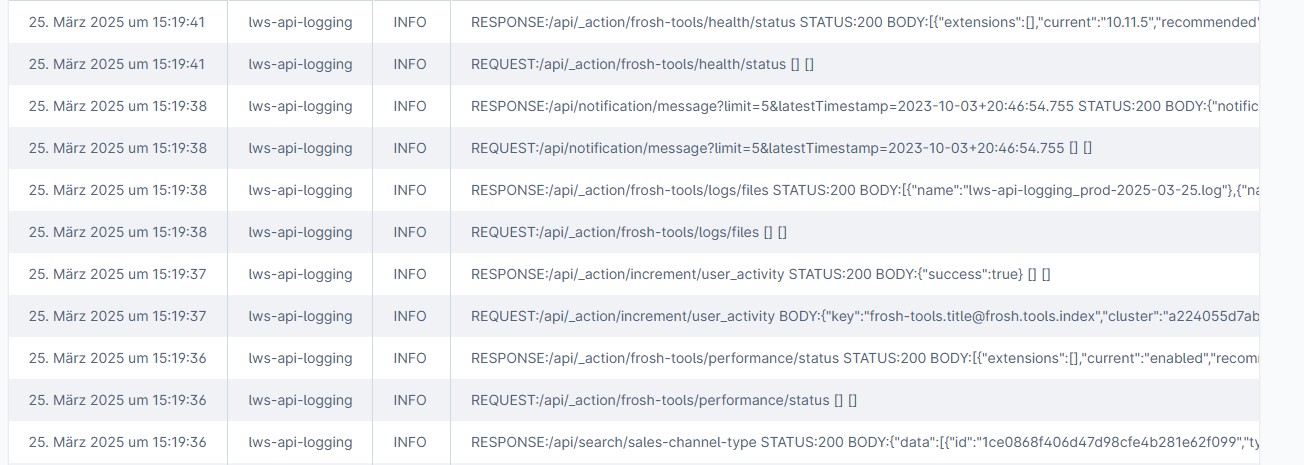 Je nach Konfiguration kann dabei sowohl der Request-Body als auch der Response-Body erfasst werden. Der Umfang der Protokollierung ist flexibel über die Erweiterungs-Einstellungen anpassbar. Für eine komfortable Analyse empfehlen wir Ihnen das Shopware-Plugin "Tools". Über den Reiter können die gespeicherten Protokolle dann direkt im Browser eingesehen werden.