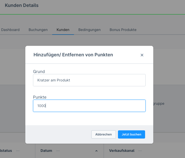 Beispielsweise Punkte bei Retour anstelle von Gutschrift