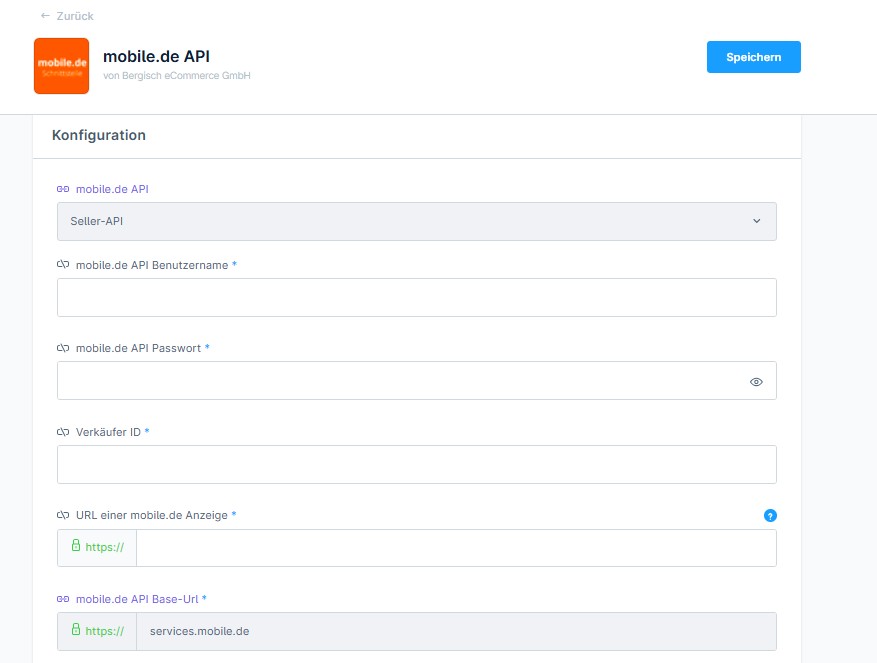 • Hinterlege deine API-Zugangsdaten, um eine sichere Verbindung zwischen deinem Shopware 6 Shop und mobile.de herzustellen.
