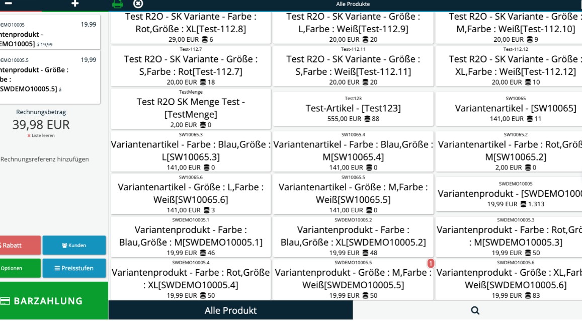 Alle Produkte/Varianten werden direkt von Shopware nach ready2order übertragen. Shopware ist Ihre Schaltzentrale für alle Produkte. In ready2order müssen keine Produkte angelegt werden. Über eine dynamische Produktgruppe werden flexibel Produkte festgelegt, welch an ready2order übertragen werden sollen.